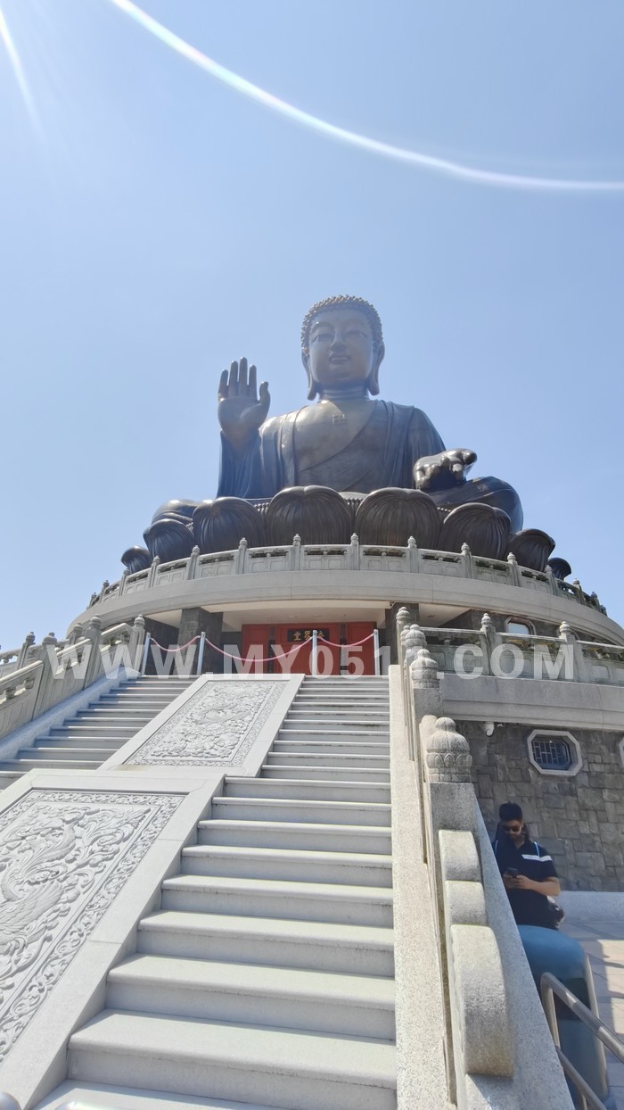 天坛大佛是一眼可以看到的,如果需要近距离看需要爬台阶上去。天坛大佛是户外坐佛,可以理解为是一个山顶位置,登上去是一个很好的观景位。