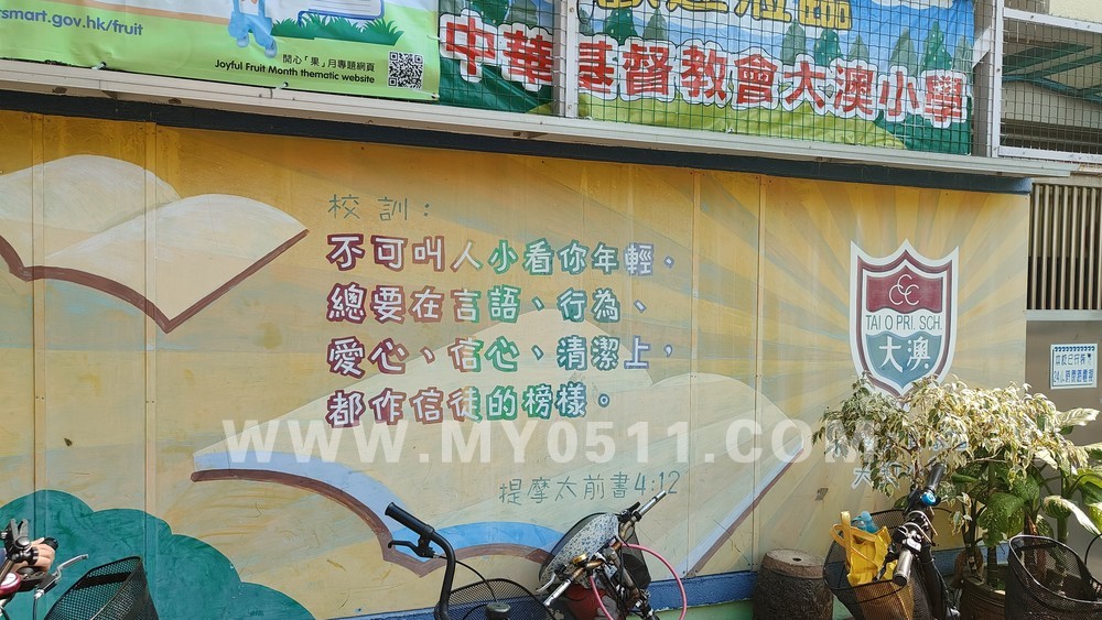 在去寻找洗手间的路上,我们路过了大澳渔村里的小学——中华基督教会大澳小学,看到了外墙上的校训——不可叫人小看你年轻,总要在言语、行为、爱心、信心、清洁上,都作信徒的榜样。