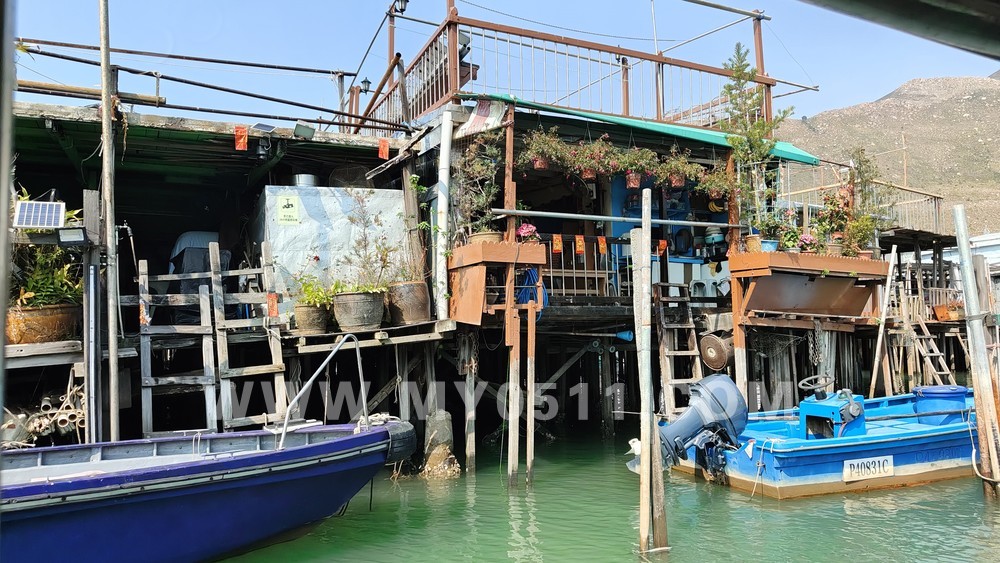 因为上船的口子比较小,所以驾驶员先带我们往渔村内部兜了一圈,我们就看到了这些建在水上的房子,是她们渔民居住的地方,确实符合港片里渔村的印象。
