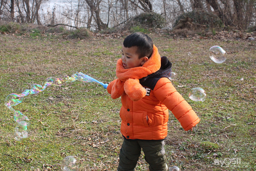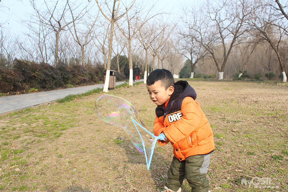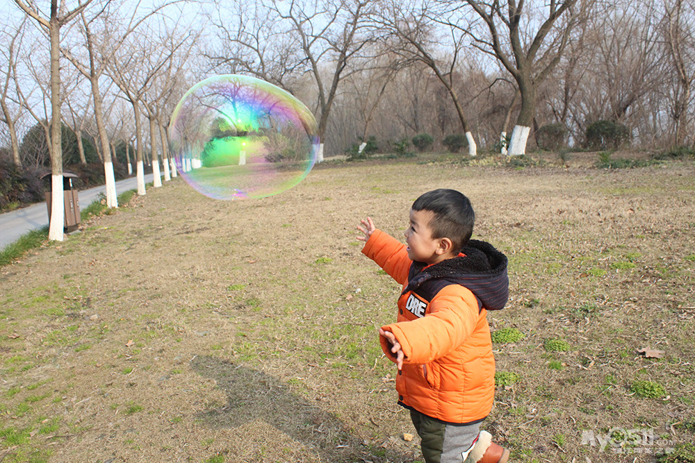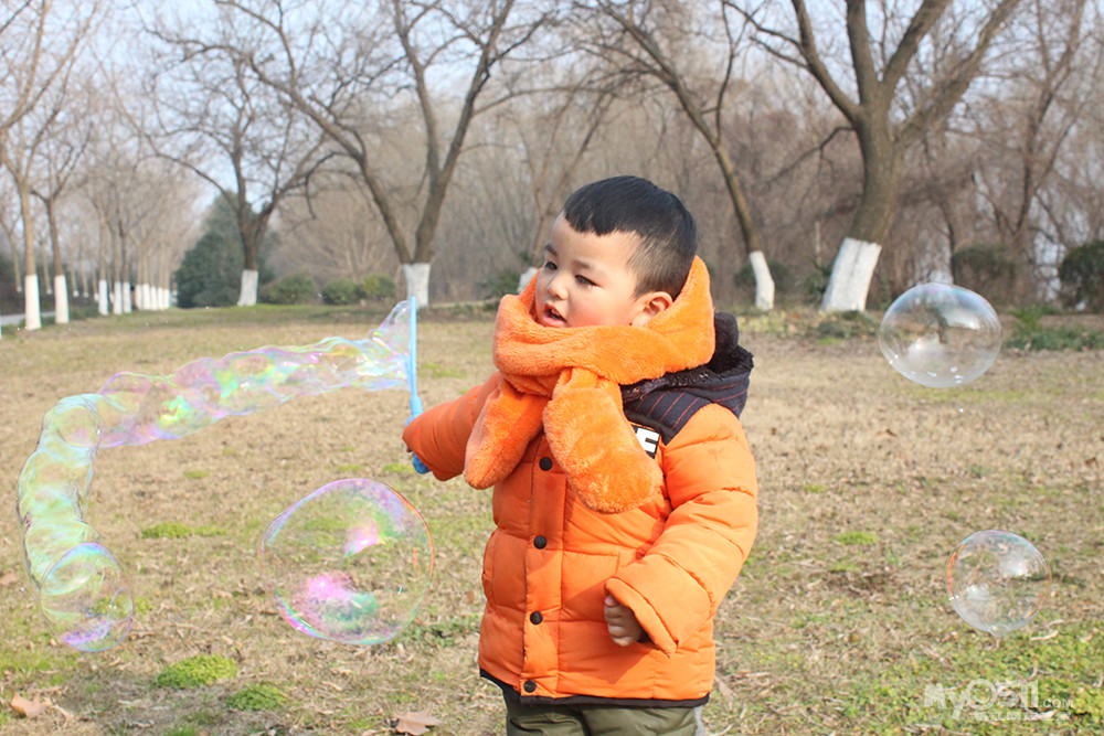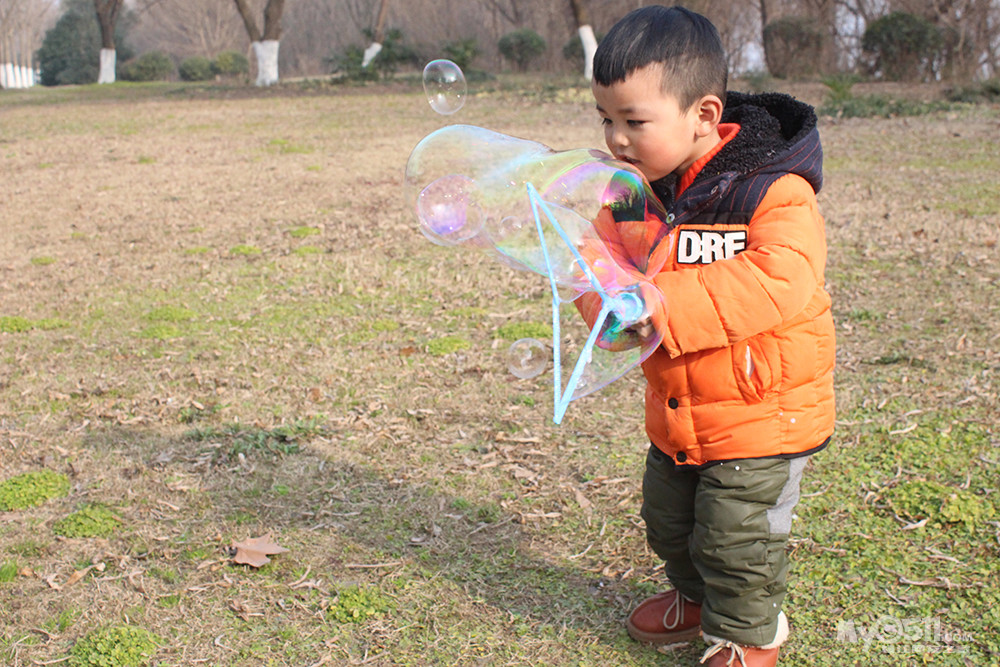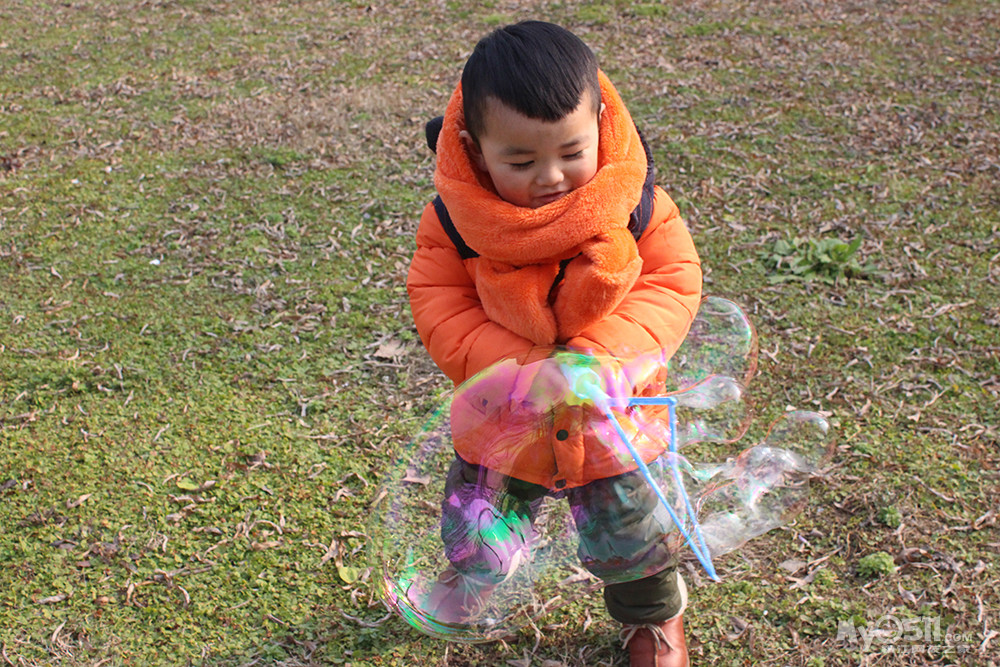 吹泡泡 记得去年还跟着别的孩子后面追呢