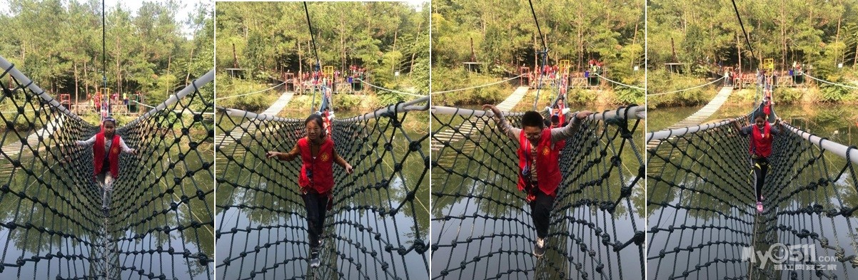 7,勇者之路:在摇摇晃晃的索桥前,一定有人害怕。经过了前面的考验,你一定变成了小勇士。来吧,接受挑战吧!