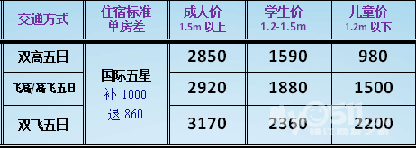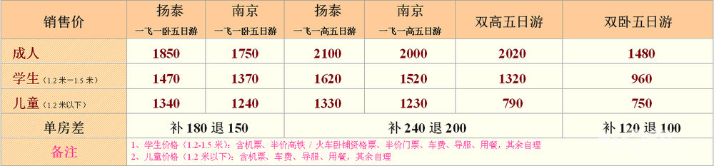 学生(1.2-1.5米)含机票、半价高铁票或卧铺资格票(无铺位),儿童(1.2米以下)含机票,不含高铁/卧铺票