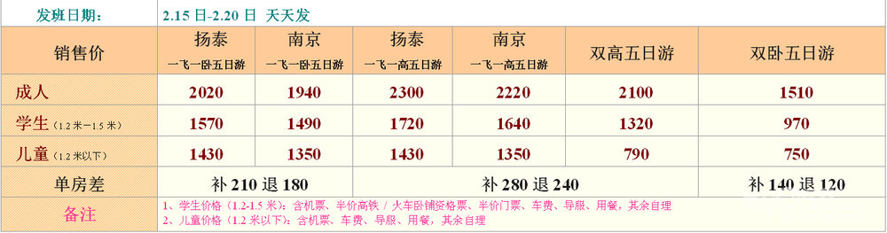 春节期间发班日期:2月15-20日 天天发班