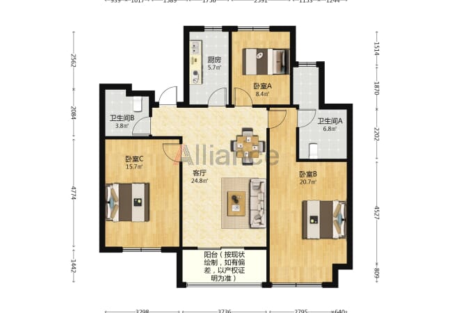 [二手房] 万达周边 y 视野开阔 采光充足 配套设施完善 交通便利 房东急售 三室二厅