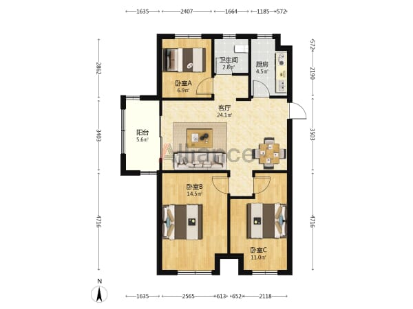 三室一厅