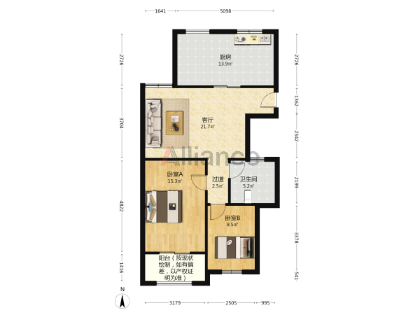 聚鑫雅苑16/18层 96平米 三房 毛坯 储藏室15平米
