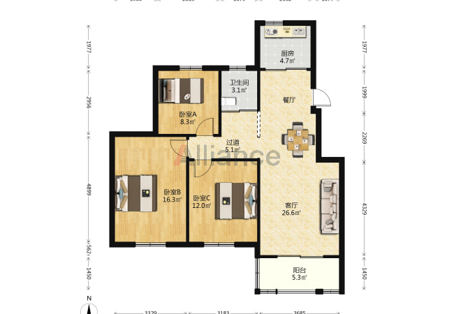 三室一厅