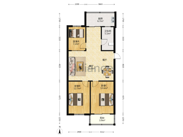 三室一厅