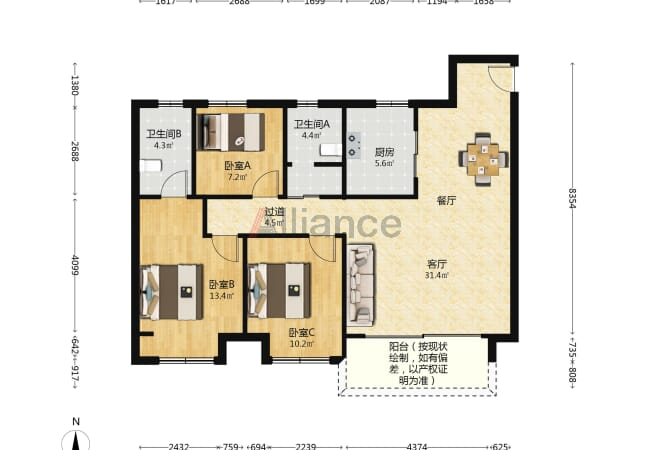 华都美景苑电梯顶复117平通透全明带露台地段好实用面积大