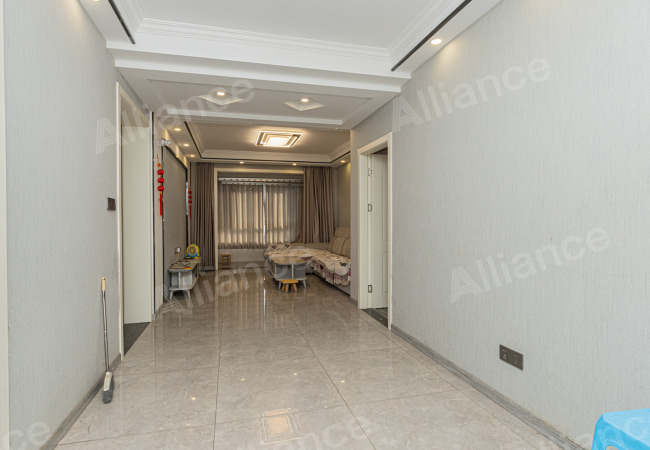 房子在中高层,不是顶楼,精装修两房两厅一卫 户型方正,拎包入住开发商自带物业负责任小区直达高架