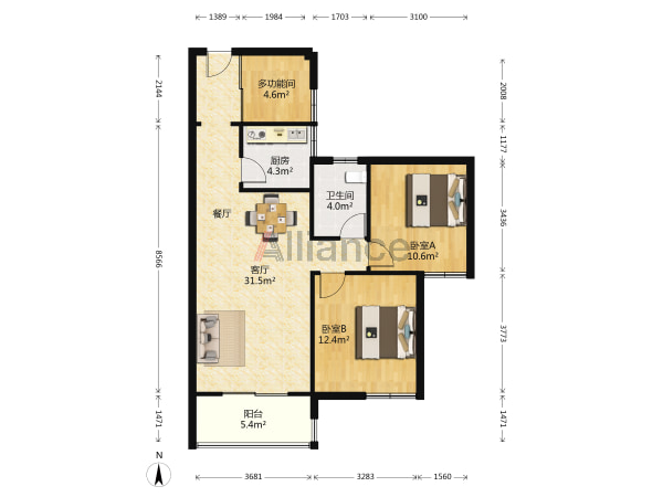 新城花园三区 12楼 86平米 毛坯 南北通透 全明