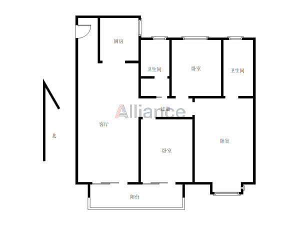 此房进门是客厅朝南 二室朝南 一室和厨房卫生间朝北 双卫 双阳台