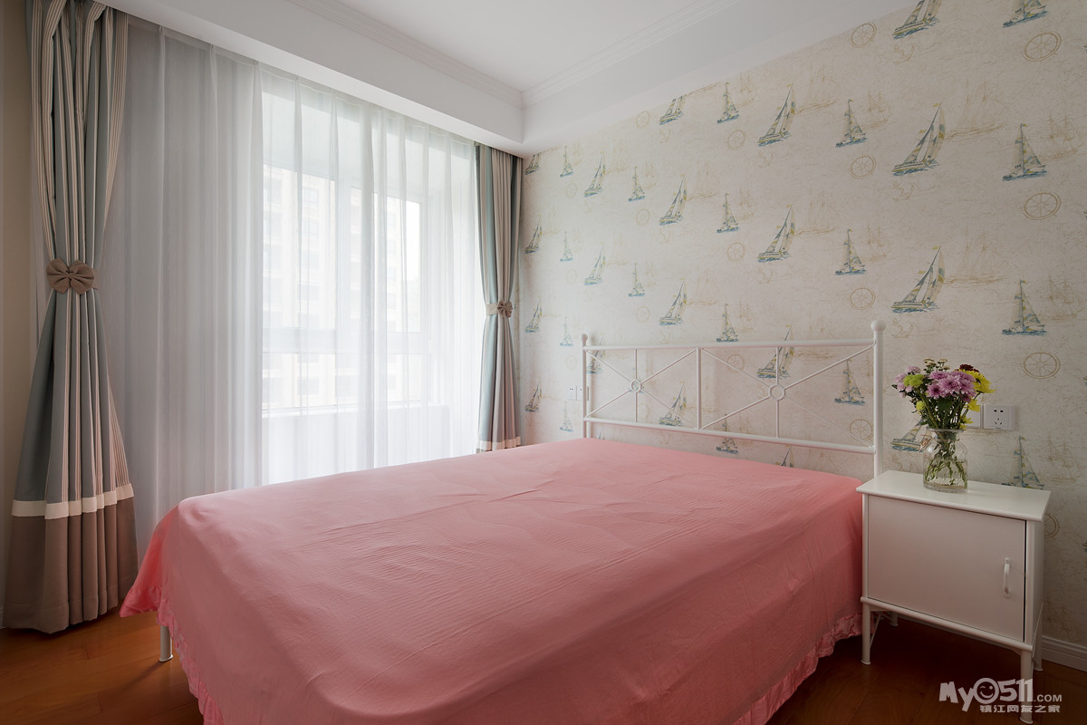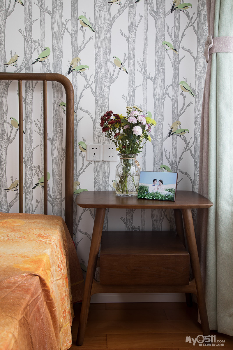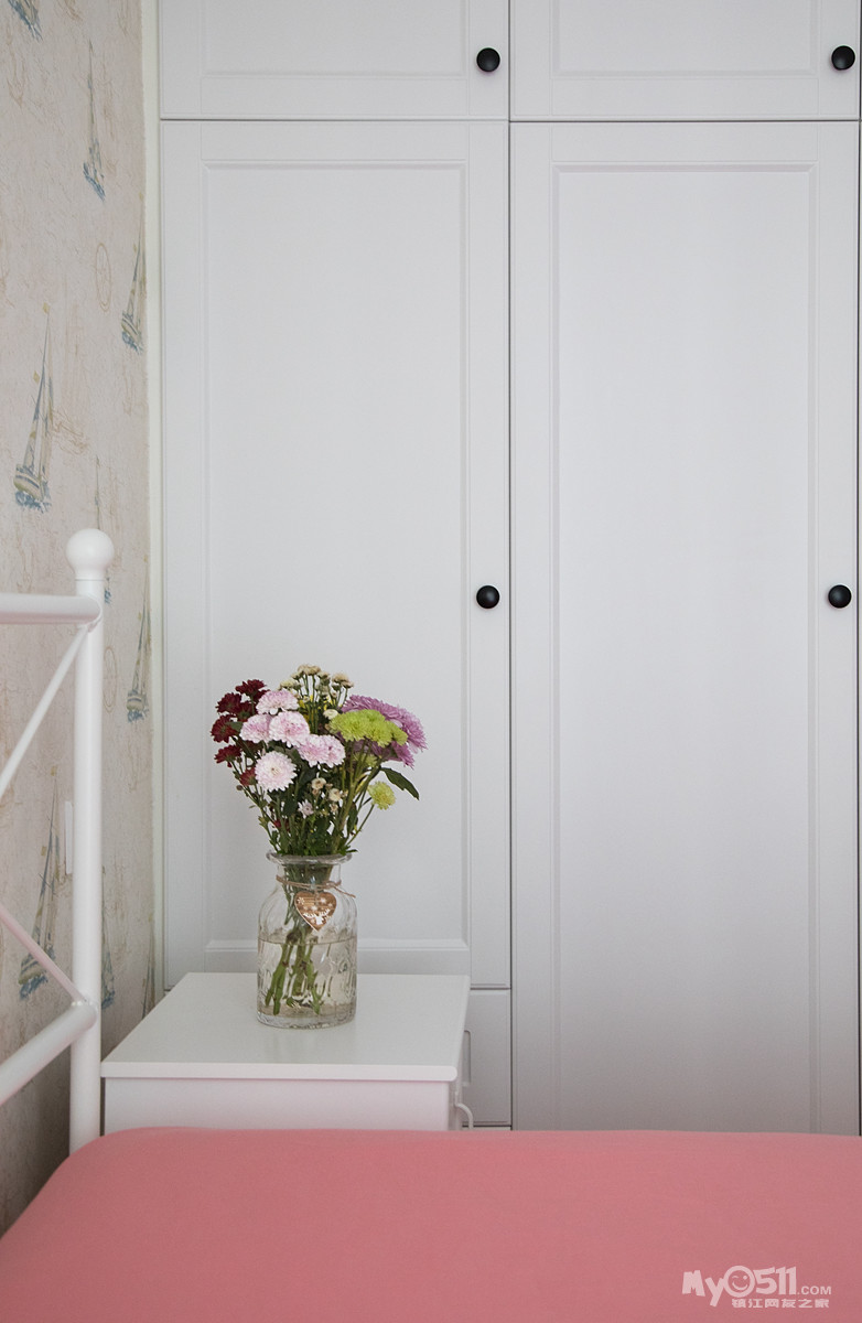次卧(小孩房),首先需要一提的是背景墙,卡通图案营造出满满的视觉感!