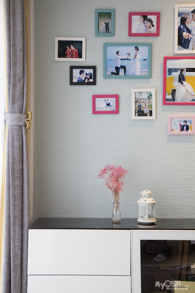 甜蜜一角:小星灯加上一束满天星,辉映满墙的照片,是一袭怦然心动,是永恒的挚爱,也是最长情的告白。