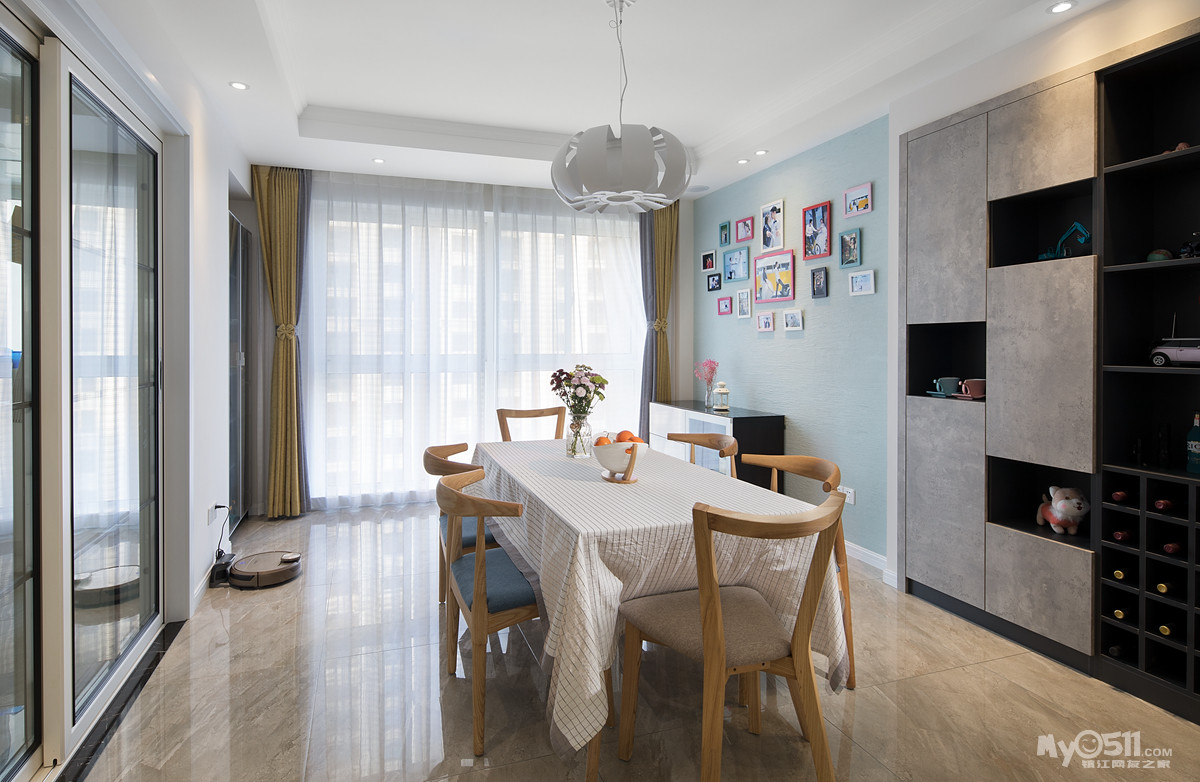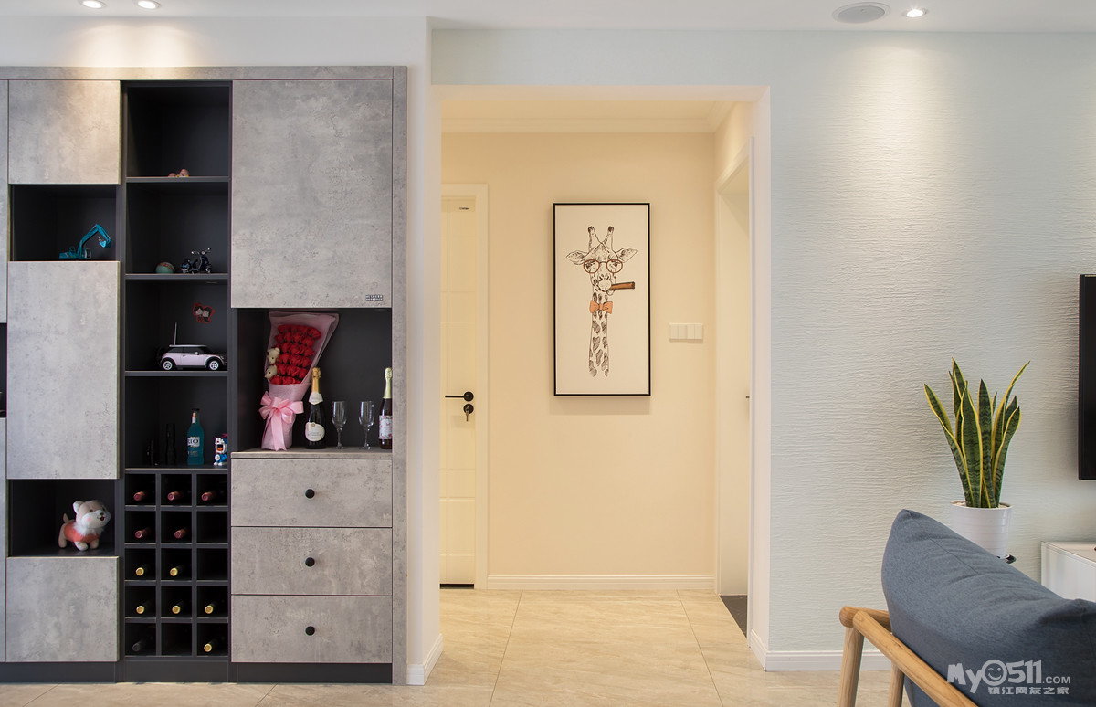 极具现代感的餐边酒柜,增加了空间厚重感 , 入墙式设计,可以很好的节省空间!