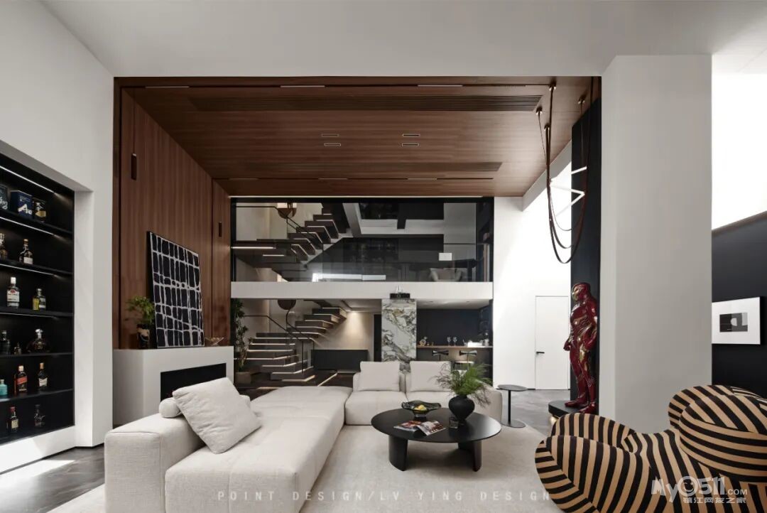 本案为一处下叠住宅,设计以“墨染木韵”为核心理念,黑与木色的搭配是一种兼具质感与氛围的设计,核心在于通过两种色调的对比与融合,营造出沉稳、高级且富有温度的空间。
