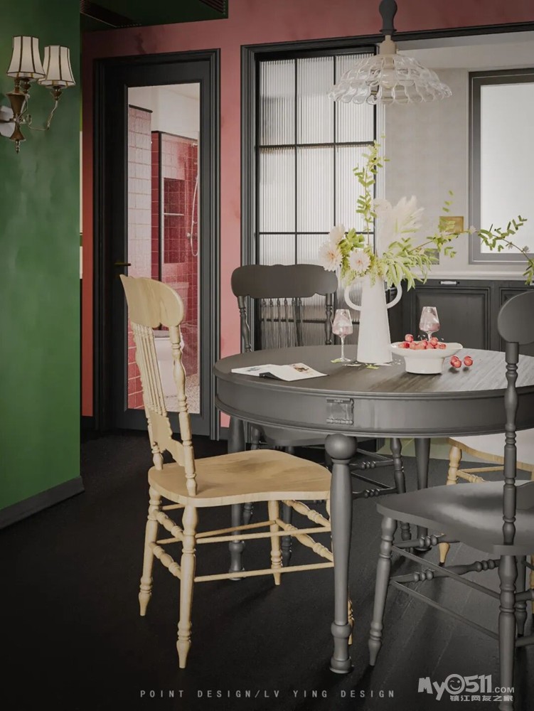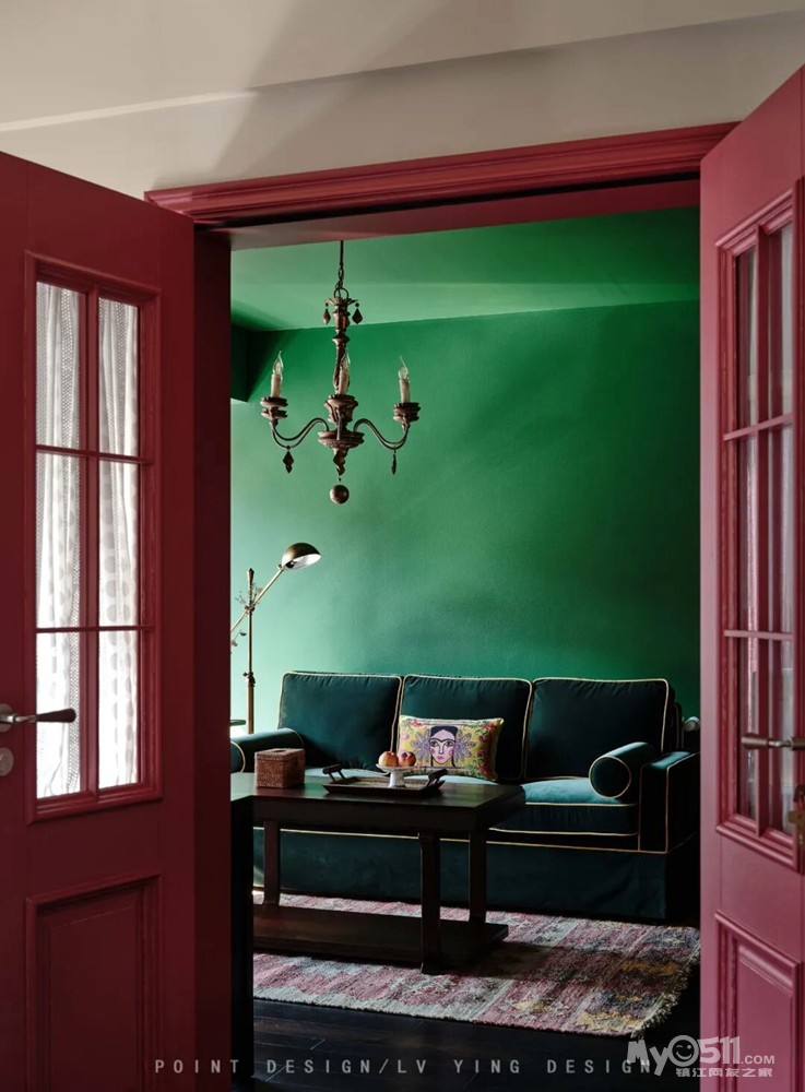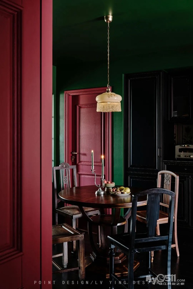 撞色怀旧复古风,大胆的用色,一些老家具,精挑细选的窗帘和墙纸,成就出一个惊艳的家!敢用红绿做主场的家,藏着主人最独到的审美,玫红的温润撞着墨绿的沉静,连阳光进来都带着复古滤镜,这才是不撞款的生活质感。
