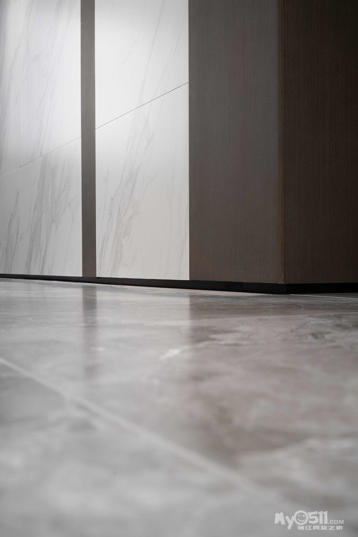 “踢脚线”是地面的轮廓线,位于地面与墙面的衔接区域。隐形踢脚线可以使空间更简约,意式极简怎么能少了隐形踢脚线呢。本案的踢脚线剖面图如下: