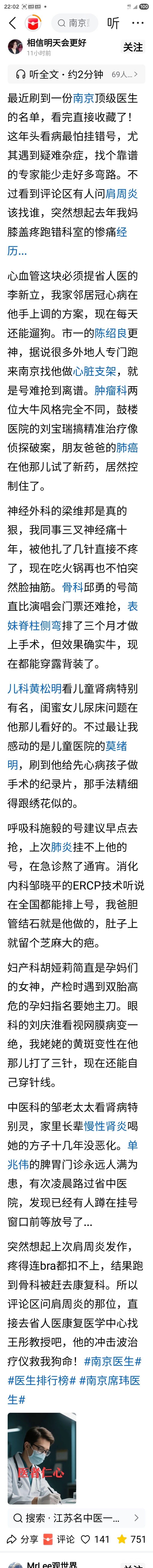 南京部分顶级医生名单