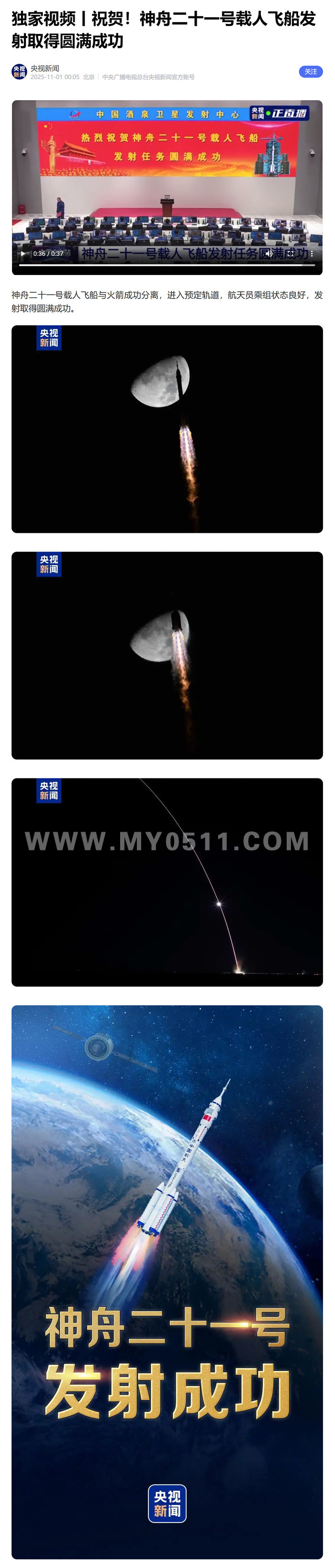 » 祝贺!神舟二十一号载人飞船发射取得圆满成功