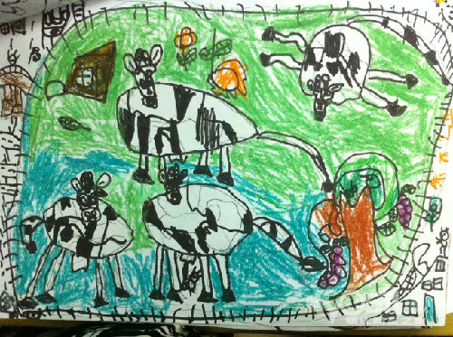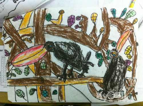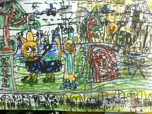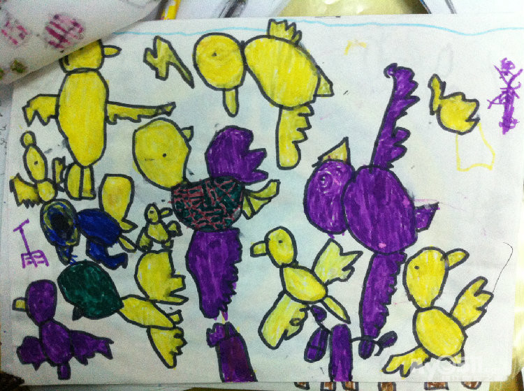 让我们随着小雨的作品慢慢走近他的世界,,,,,,那时,他才小班,刚刚学画不久。。。。。。